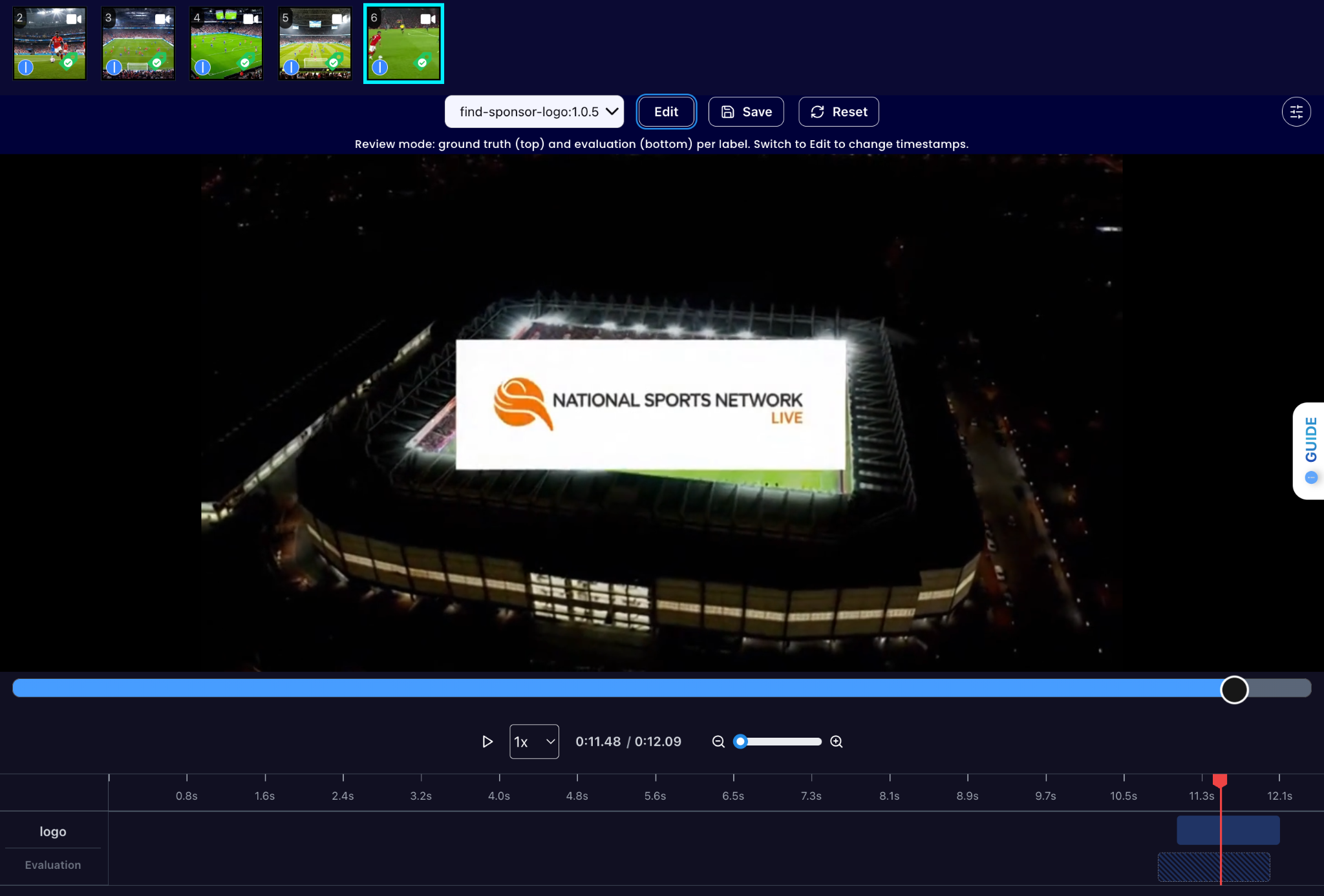 Select one of the videos in the dataset and click on the review button.
